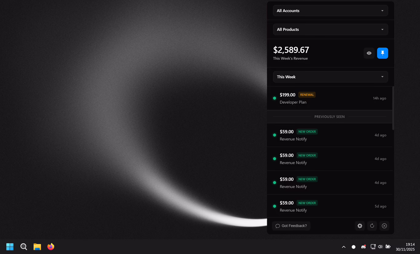 Revenue Notify saves me time checking and will notify me in real time, summarize what I have earned for the day, week, month etc and if I need to provide quick customer support, I have access to the order data at click of a button from my taskbar.